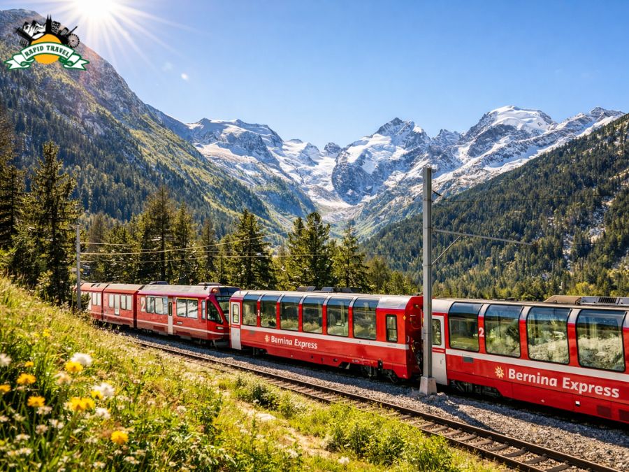| Bernina Express | Panoramiczny pociąg kursujący na trasie przez Alpy pomiędzy północną Italią a wschodnią Szwajcarią, wpisanej na listę światowego dziedzictwa UNESCO. Charakterystyczną cechą składu są wagony z dużymi, panoramicznymi oknami, umożliwiające nieprzerwaną obserwację krajobrazu. Trasa prowadzi przez wysokogórskie przełęcze, wiadukty i doliny alpejskie, bez wykorzystania tuneli na kluczowych odcinkach. W programie przewidziany jest przejazd pełną trasą panoramiczną. |