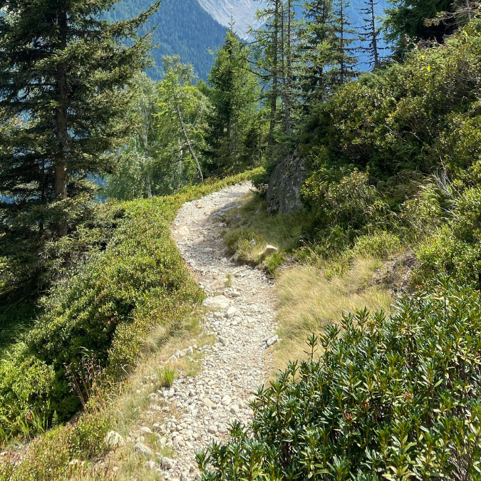 Prawdziwe wejście zaczyna się dopiero wyżej – długie, strome podejście na przełęcz, gdzie krajobraz nagle zmienia się w surowy, wysokogórski amfiteatr otoczony ostrymi szczytami.