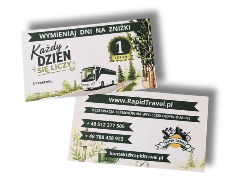 Jedną kartę lojalnościową przyznajemy za każdy dzień wycieczki indywidualnej zorganizowanej przez Rapid Travel.